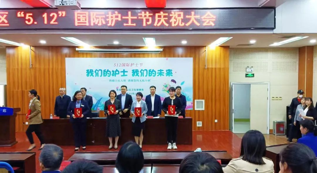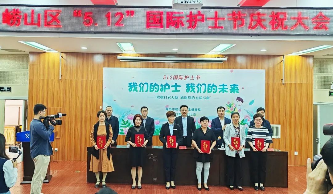 在国际护士节来临之际,崂山区卫生健康局举办“我们的护士 我们的未来——致敬白衣天使 感谢您的无私奉献”表彰会,我院院感部主任王美玲荣获“崂山区30年好护士”荣誉称号,血液透析室护理团队荣获“崂山区优秀护理团队”荣誉称号,护士长杨小苗作为代表上台领奖。