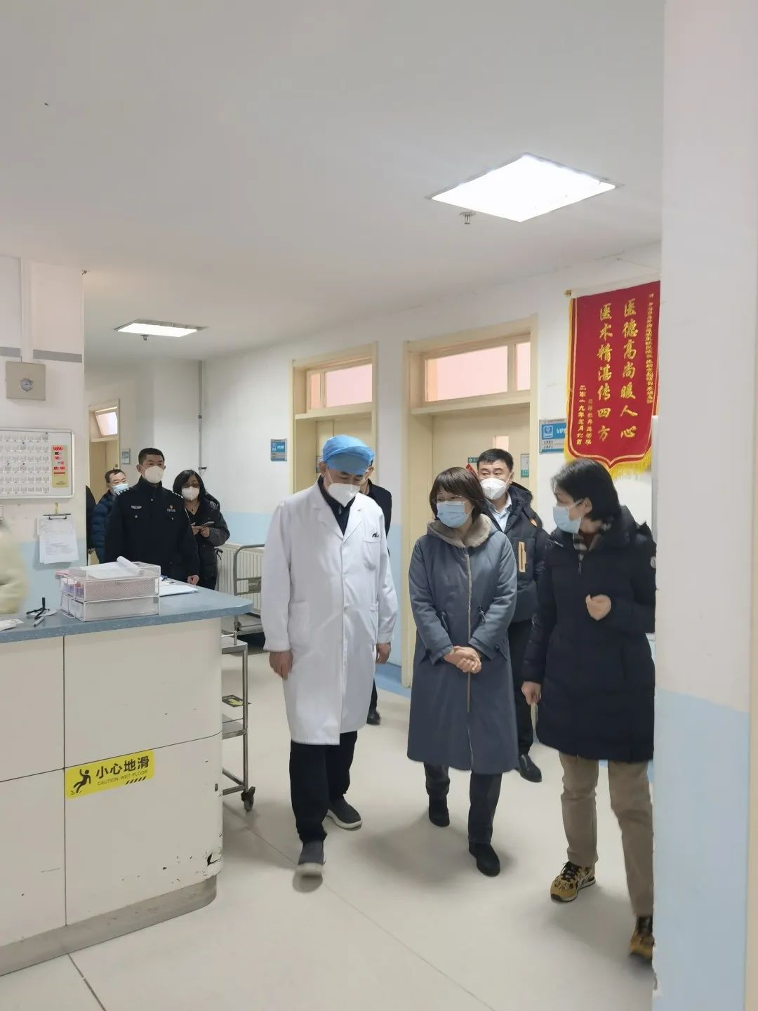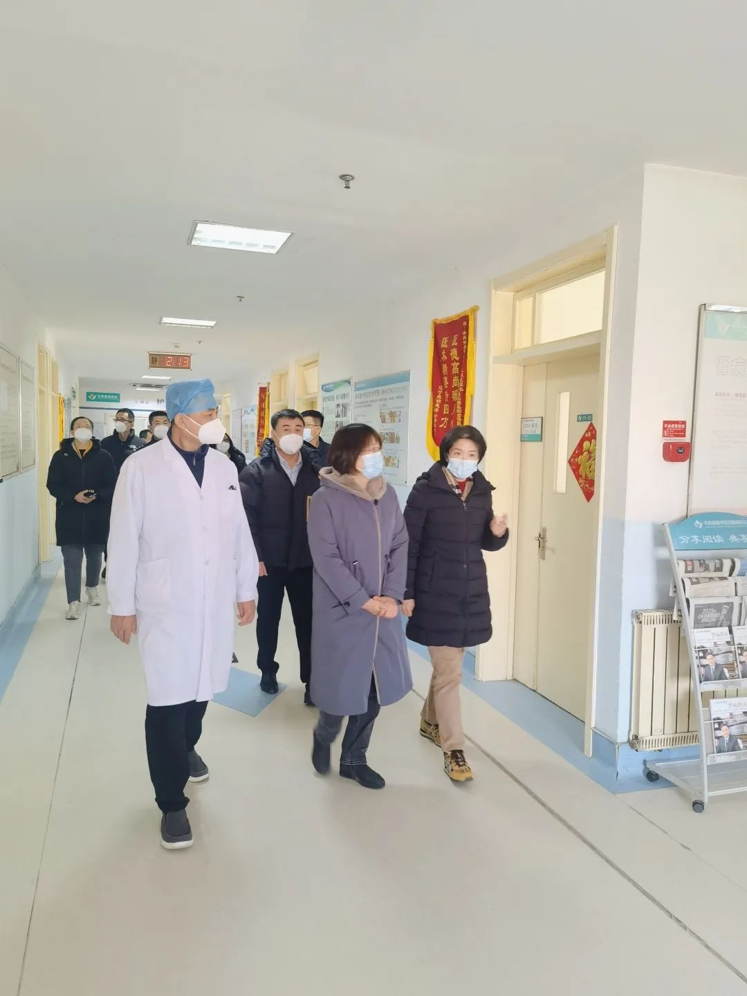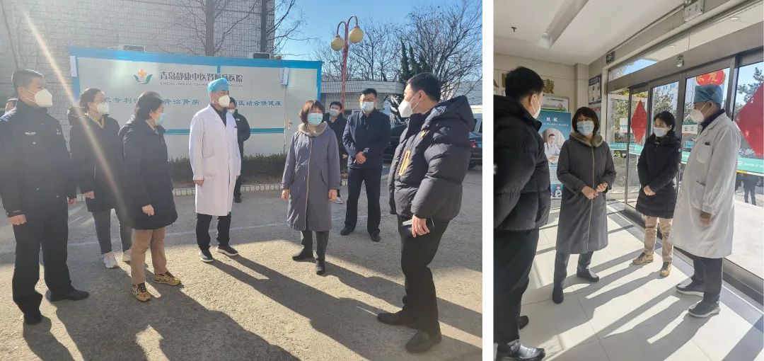 1月20日上午青岛市崂山区副区长张咏雁、青岛市崂山区卫生健康局局长万延俊等十几位领导莅临青岛静康中医肾脏病医院,进行节前安全生产检查并慰问医务工作者。青岛静康中医肾脏病医院总经理蒋方、院长王铁民等陪同慰问。
