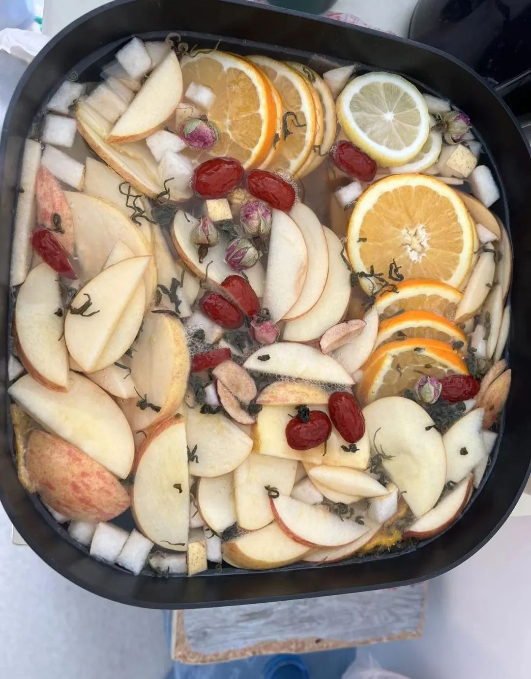 (医护人员为患者和自己煮的水果茶,单珊主任和李国栋主任包饺子带给身边的“战友”)