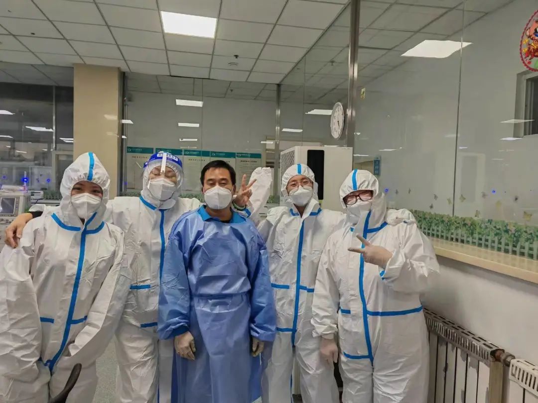 各病区医护人员顶着高烧、刀片嗓、浑身酸疼等不适,如往常一样查房、讲解病情、下医嘱,时刻关注着患者情况,各司其职,忙而不乱。三病区李国栋主任更是扛着多日高烧不退的身体带着王冠医生、薛涛医生等人,直接住在了病区,十几天的时间坚守在岗。无论是医生、护士还是后勤人员,在最艰难的时刻,没有一个人掉队,他们也没有时间当病人。