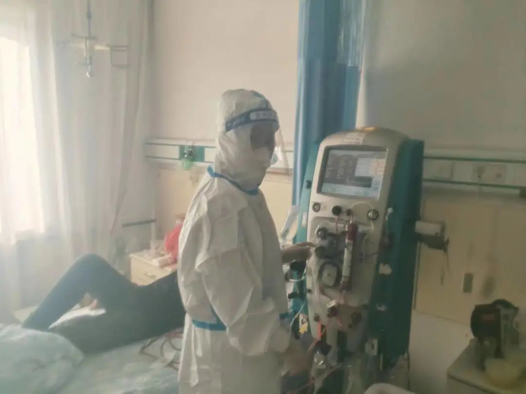 期间,病区的一例阳性患者,由于感染症状加剧,身体开始出现各种并发症,不得不进行紧急透析救治。