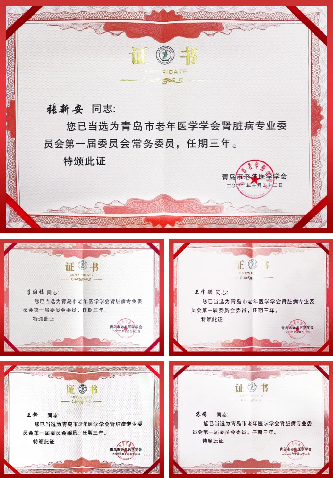 我院5人获聘青岛市老年医学学会肾脏病专业委员会第一届委员会常务委员、委员
